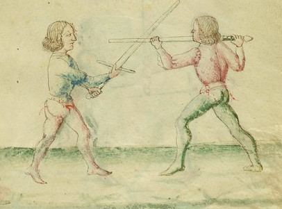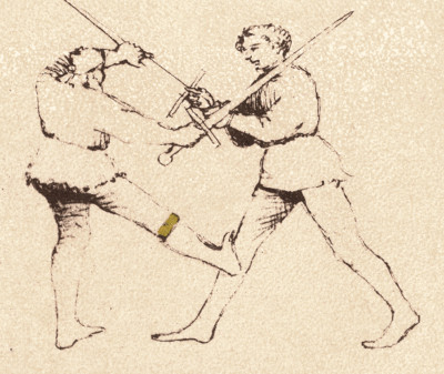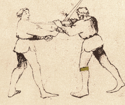 Historical Swordfighting Systems - an OverviewFioreThe illustrated Italian fencing manuscript Fior di Battaglia ('The flower of battlle', around 1400) by the knight Fiore Furlano de'i Liberi is one of the earliest fencing manuals describing longsword techniques that has survived. The manuscript itself isn't particularly focused on longsword - it treats many kinds of combat, including wrestling, the use of the dagger and the one-handed sword or mounted combat.The Fiore system appears to aim at being applied in actual wars. Not only does it describe encounters of different weapons (longsword vs. spear) or describe techniques which are chiefly of use when faced with multiple opponents such as the volta stabile (a quick turn without changing position), but it also includes techniques which are brutally effective, but have little resemblance to lofty ideas about noble knightly combat - for instance kicks into the groin or to the knee: