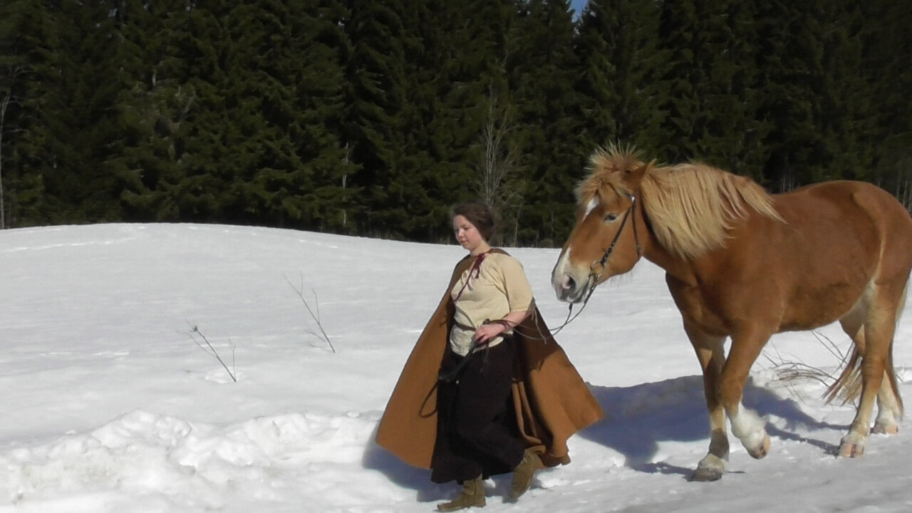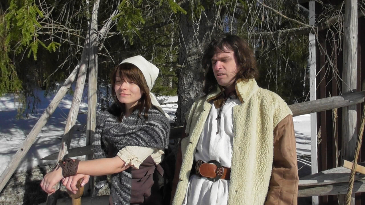 Since we work in real snow (and at the time of 'Blood in the Snow' this means half a meter of it), the set has to be prepared to be accessible for the actors by cleaning some of the snow away or trampling a path. Also, for camera work, wearing overalls is a good idea because you might need to lie down into the snow or move into the deep snow in the forest to get a good perspective. Sometimes we've been working in fairly cold condition (-14 deg C probably was the lowest). The medieval costumes we have aren't exactly suitable for these temperatures, so there's warm jackets and hot water kept nearby to warm up as soon as the take is done. If you sometimes see Clíodhna like she's really cold and shivering in a winter scene, that's mostly not brilliant acting, she actually is getting cold! Otherwise there's a fair amount of tricks going on, in terms of what we show in the movie and what is really just outside the camera angle, or how we force perspectives to make it seem a room is larger (or smaller) than it actually is. For instance, in the movie you can see Rórdán and Siofra leaning on a fence they were just building and having a break.