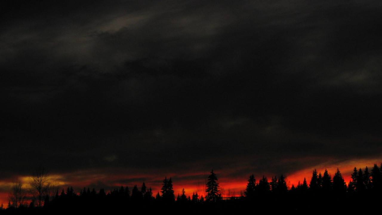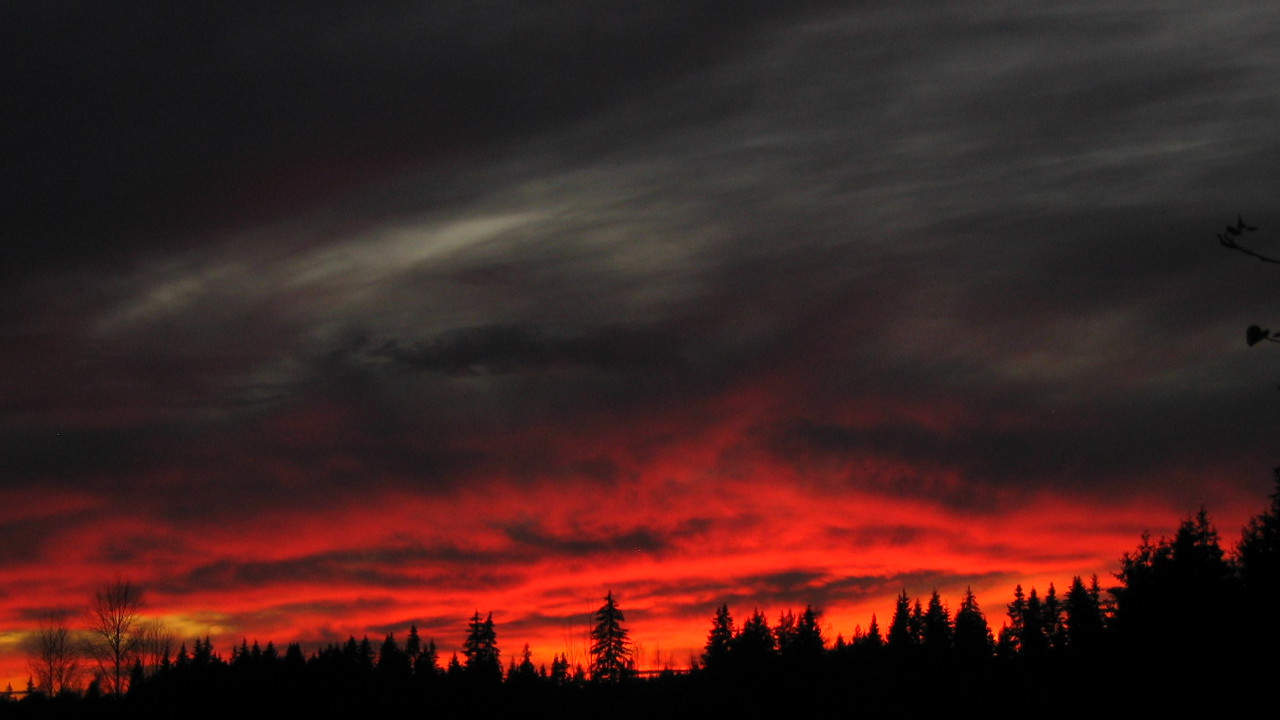 Again a few minutes later, the deep red illumination moves towards the horizon and more and more of the cloud layer lies in shadow.